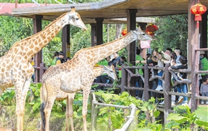 ③2月6日,春节假期的最后一天,海南热带野生动植物园吸引了众多市民游客,与长颈鹿等野生动物来一次亲密接触。