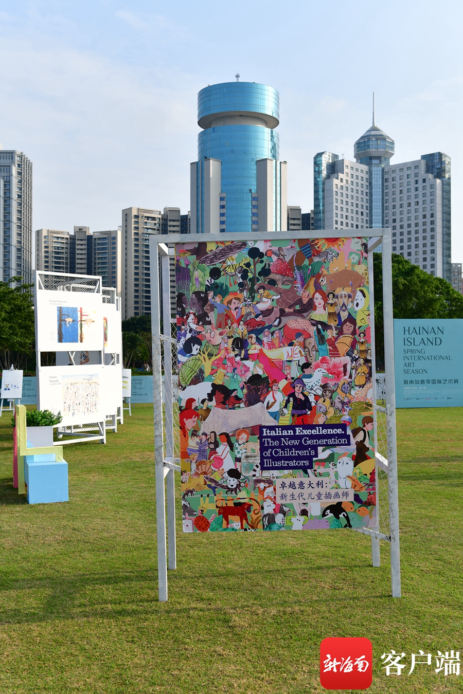 新海南客户端、南海网、南国都市报1月12日消息,2022海南岛春季国际艺术展系列活动之一的“卓越意大利:新生代儿童插画师展”在开放式公园海口市万绿园中心草坪举行。20名意大利最具潜力的新生代插画家的精品在草地上一一呈现,观众可以免票进场欣赏。