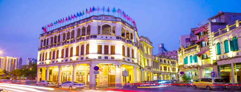 海口最早最大的码头,被誉为海口“威尼斯”。当时沿河道两岸临水建起的骑楼仍伫立着,巴洛克风格建筑富丽而自由,方便通风采光的木栅栏结构清晰可见,电影《芳华》最后片段取景的建筑物就在其中。沿街商户多为咖啡馆、书店或食肆,繁华依旧,行走其间,恍若悄无声息穿越了时空。
