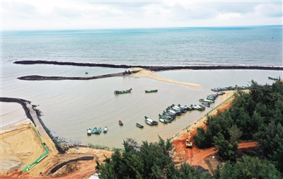 新海南客户端、南海网、南国都市报2月21日讯,2月21日,海口天气阴冷,不时飘洒零星细雨。在海口西海岸长香路旁,海岸改造依然继续。道路的尽头是西汉烈楼港,该港口将升级改造成旅游胜地。