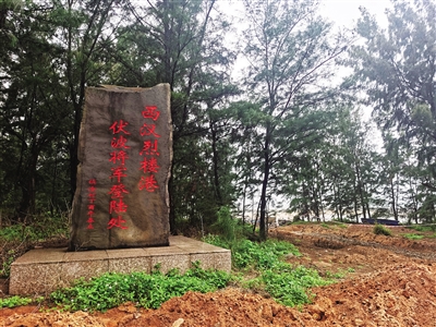 西海岸长香路尽头竖立的西汉烈楼港石碑。