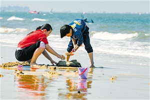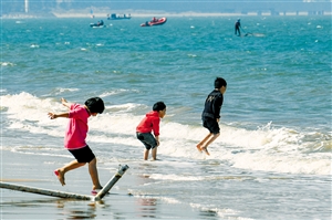2月26日下午,西海岸阳光明媚,众多市民游客带着孩子前来游玩,享受春日里的暖阳和海浪,度过快乐的周末。