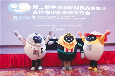 本报海口3月1日讯,消博会吉祥物“新装”亮相。3月1日,第二届中国国际消费品博览会(以下简称2022年消博会)吉祥物IP新形象发布会在海口举行,发布消博会吉祥物IP新形象——“产业猿”。