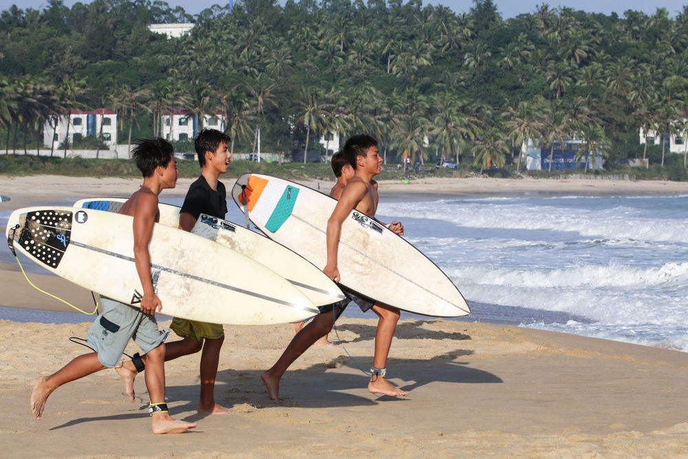 海南省日月湾、清水湾、石梅湾及海棠湾是我国知名的冲浪胜地,国家冲浪队、各省市专业队以及业余冲浪爱好者均汇集于此训练、比赛、交流。