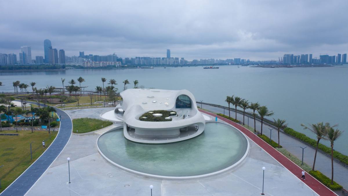 云洞,像是大自然在不经意间雕刻的艺术品,简单而随性,里里外外的孔洞,像极了大自然中随处可见的“洞”。这座由著名建筑师马岩松设计、地处海口湾畔世纪公园、占地面积4397平方米的大型国际公共艺术建筑,早已与碧海蓝天融为一体。