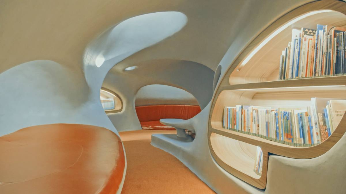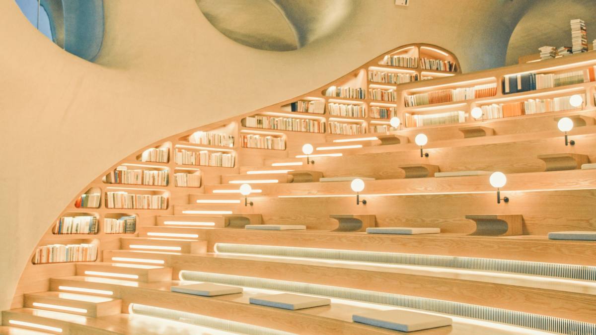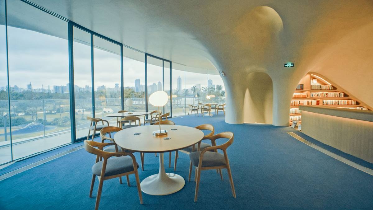 建筑南侧的书馆内含有万本藏书,宽敞、明亮、干净的阅读空间将会为你即将开启的阅读拉满仪式感。轻轻翻动书页,耐心品味文字所描绘的人生百态吧!任那温暖柔和的自然光线洒落脸庞,你纵情享受着人间的一期一会。