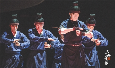 文化上的用心,在《只此青绿》中俯拾即是。“演出时使用的丝绢、毛笔、模具等几乎都是非遗传承人提供的真实物品,一道道繁琐且细致的工序得以在舞台上艺术化呈现。”刘鑫介绍,《千里江山图》是中国传统工艺的智慧凝结。北宋时期,织绢、制笔、制墨等工艺均发展到了高峰。而这些工艺的成果汇集在舞台上,以精妙的舞蹈语汇揭示出“大匠造物”“物以致用”智慧的古今传承,展现了中国古典艺术之美和优秀传统文化的时代气息。