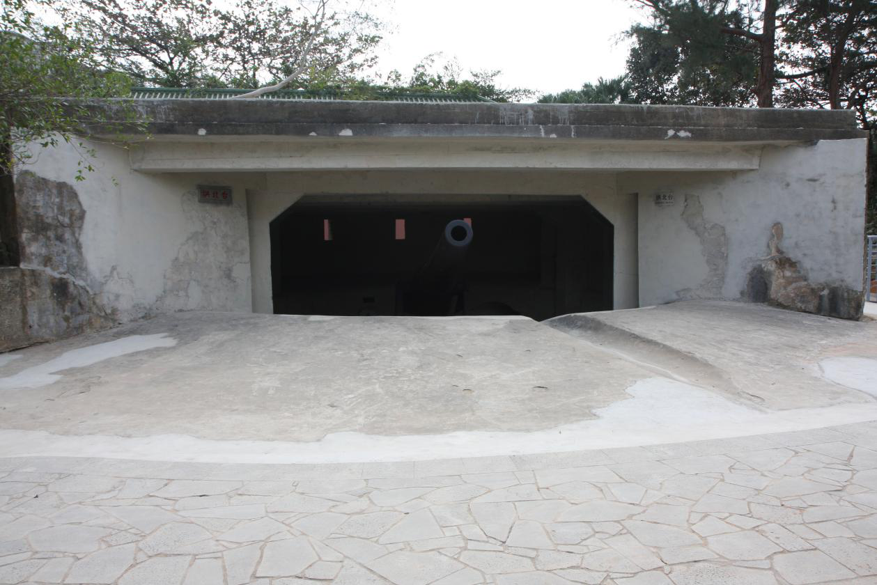 不等竖放炮弹的小龛和4个藏兵洞,大炮固定在装有铁轮的炮架上,可在环形铁轨上四周旋转,上下、前后、左右皆可射击,所置大炮是德国克虏伯炮,后膛装弹,为当时世界上较先进的大炮,口径为0.20米,射程约10公里;炮台采用进口洋灰(或称红毛土)合成的混凝土、青砖或红砖筑成,安放大炮的地方原为露天,抗日战争全面爆发之后,民国政府对炮台进行修缮加固,并加修了顶盖。
