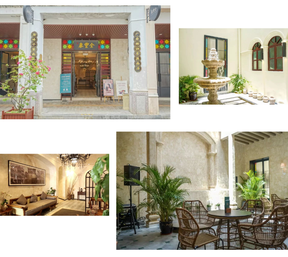 20世纪30年代,海口骑楼建筑已经拥有了包括35个行业在内的572家商铺,如“永昌利”、“云旭记”、“远东公司”、“广德堂”等等。这些历经百年风雨的老商号从未消失于记忆,始建于民国初期的老商号“全丰泰”,如今已摇身为具有崭新姿态的文化餐厅,其巧妙地将百年商号融入其中,深刻的文化底蕴得以再现世人。
