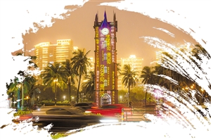 “五一”期间,海口钟楼持续上演光影秀,以“久久不见,海口见”为主题,欢迎八方来客。 本报记者 陈长宇 摄