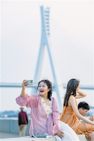 ①市民游客在北港岛欣赏美丽滨海景色。 本报记者 康登淋 摄