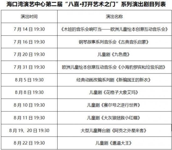 海口湾演艺中心第二届“八喜·打开艺术之门”系列演出剧目列表。海口湾演艺中心提供