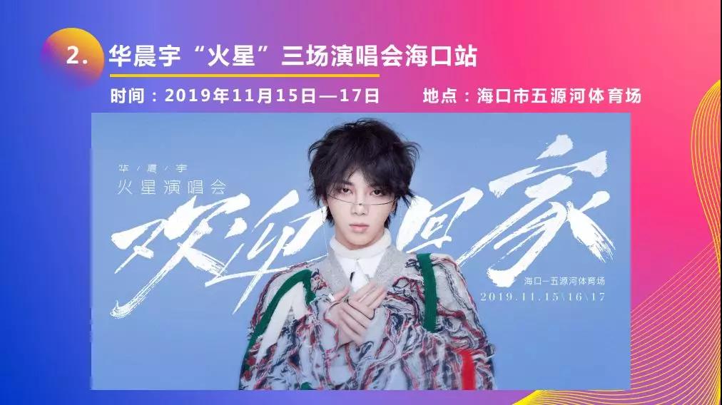 11月15日至17日,华晨宇将连续三天在海口五源河体育场举办“火星”演唱会。