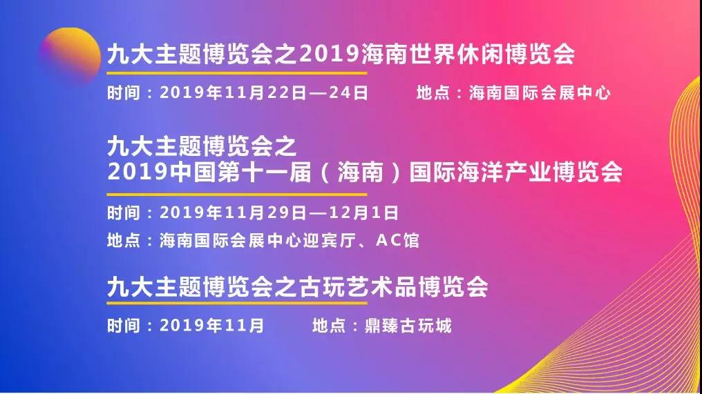 9项文体活动。ICE世界名猫赛、2019年第二届海南《21世纪海上丝绸之路合唱节》闭幕式、“千车万人”游海南活动等活动。