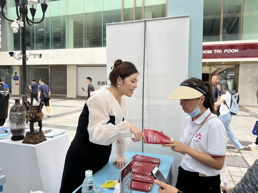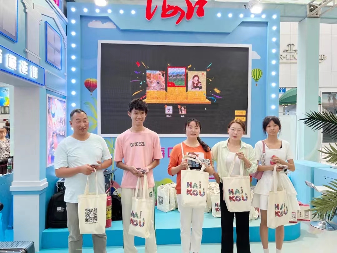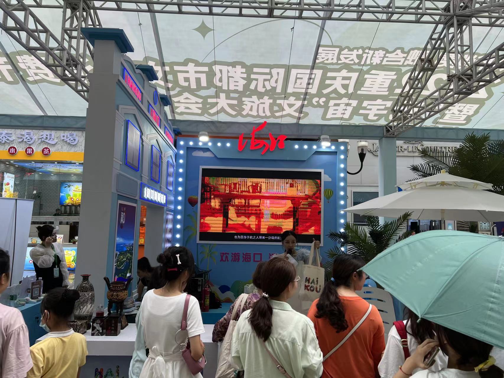 同时,随着国内防疫政策的转变,加之暑期旅游旺季的到来,海口市旅游文体局在活动现场,以骑楼老街和滨海都市为主要元素搭建了清新靓丽的海口旅游形象馆,以滚动播放海口旅游宣传视频,投放海口旅游材料等形式,宣传海口旅游新业态、推广海口旅游新产品,多角度、多形式推介展示海口旅游资源。并在展馆现场进行海口非遗工艺椰雕、黄花梨展示等,加快海口非遗文化走出去,让海口非遗文化“活”起来。