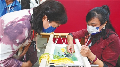 粤绣技艺演示。