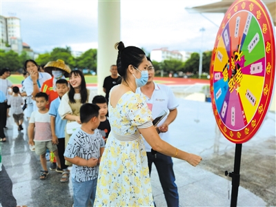 在乐东民族文化体育广场,市民积极参加互动游戏。(海口市旅行社协会供图)