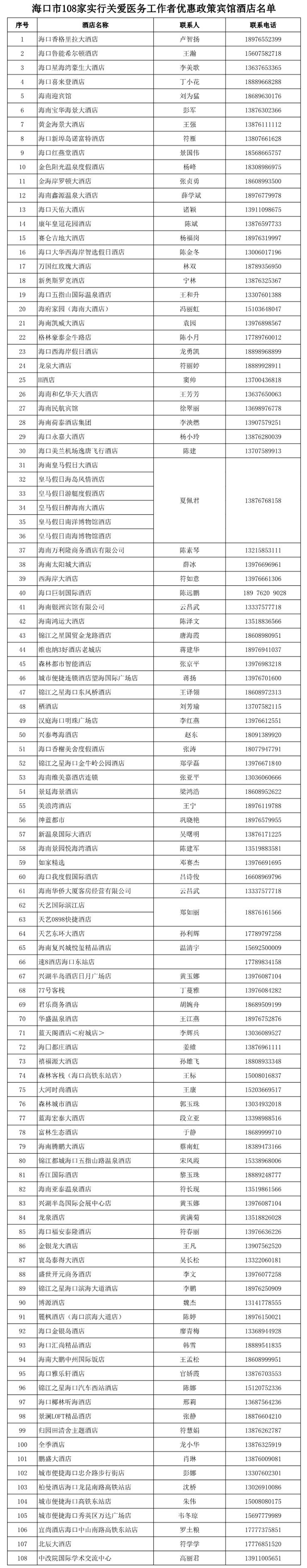 二、致敬“战疫卫士”海口108家宾馆酒店5折优惠