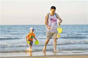 海口五源河国家湿地公园入海口处环境优美,已经成为市民游客休闲散步的好去处。这是7月23日,游客正在海边游玩。 本报记者 石中华 摄