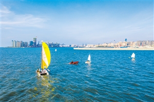 炎炎夏日,体验帆船、帆板、冲浪板等海上运动项目成为不少市民游客的选择。这是7月29日,市民游客在海口市国家帆船基地公共码头“玩海”。 本报记者 石中华 摄