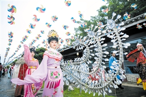 本报8月4日讯,极具特色的传统服饰、优雅动听的古风音乐,七夕当天,一场充满浓郁中国风的游街祈祷活动在琼山区琼州文化风情街上演。