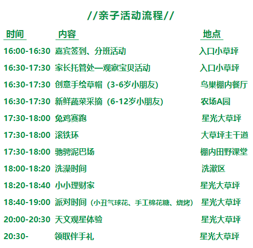 温馨提示:因部分游戏环节会弄脏衣物,请各位家长给宝宝带换洗衣物2套,泳衣一套。