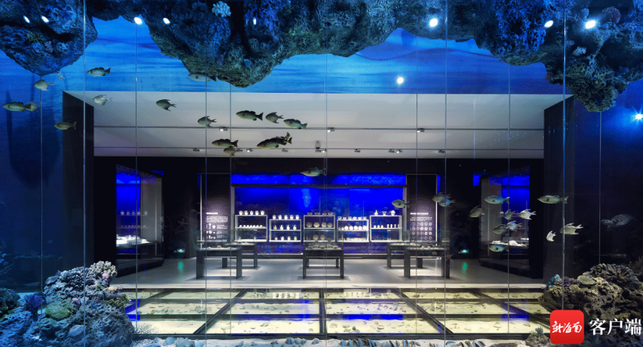 在展览布置上,海洋气息浓郁,文物本来的状态无须赘言便一目了然。文物陈列不在简单和枯燥,而是变得富有情趣与韵味,提升了观展的趣味与美感。