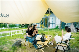 ▶9月12日,在海甸溪北岸的西溪里商业街休闲广场,市民游客在草地上露营,享受美好时光。 本报记者 康登淋 摄
