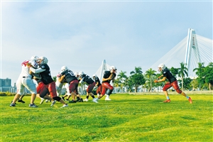 ◀9月12日,在海口世纪公园,市民游客在露天草地上进行体育运动。 见习记者 杨 鹤 摄