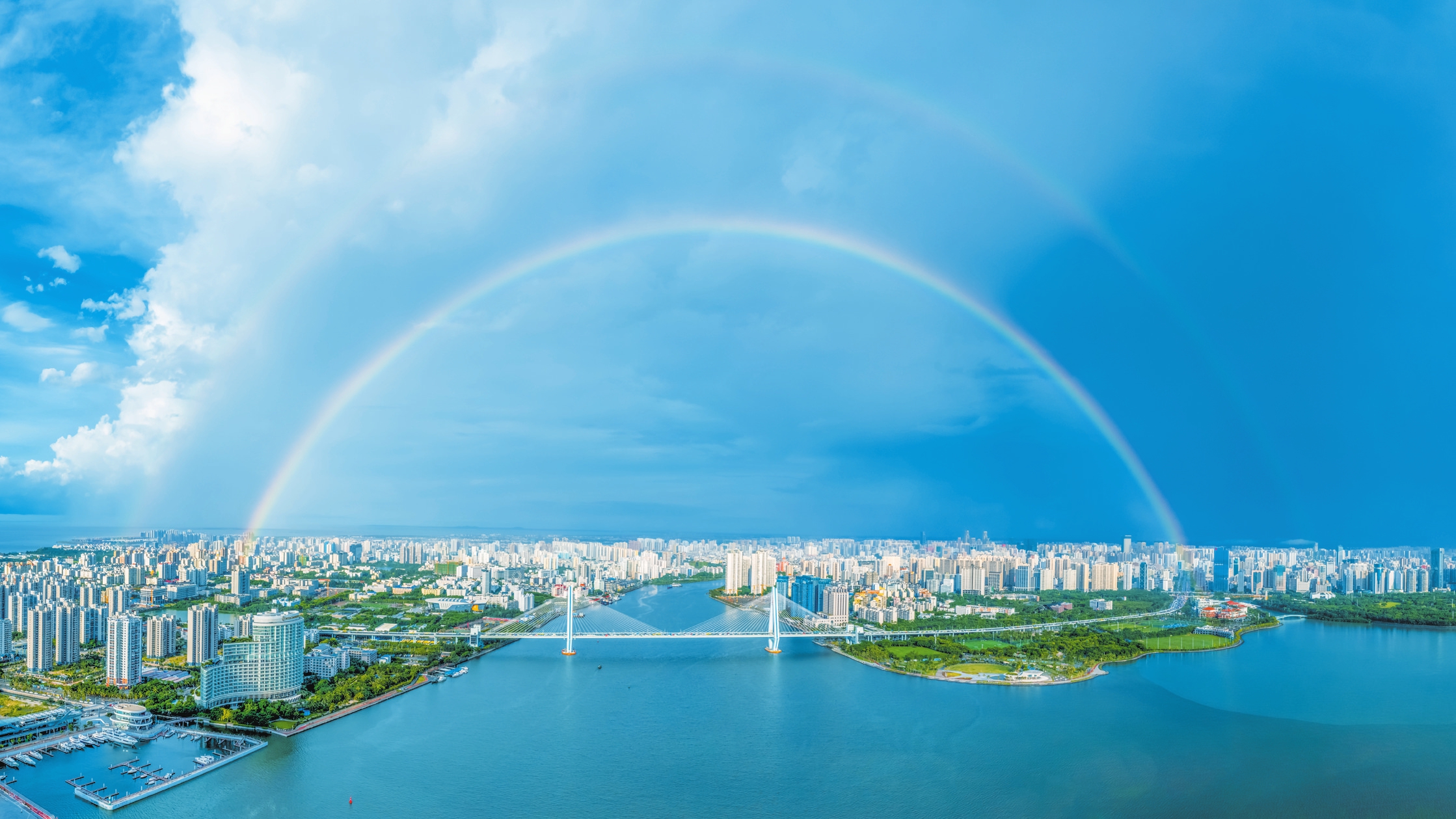 彩虹“罩”椰城,壮观!