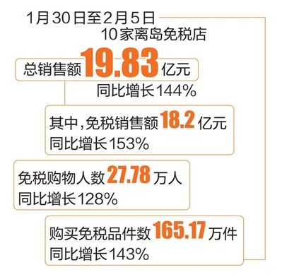 我省春节消费市场活力足 海南离岛免税店7天销售额近20亿元