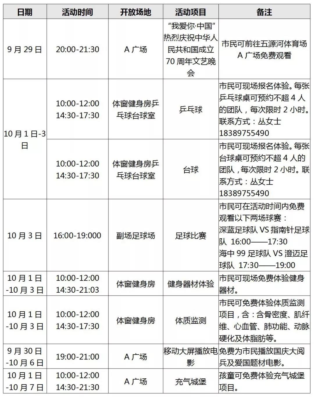 3、迷你高尔夫,日期:2019/10/03,时间:18:00-19:00,收费:98元/位,地点:球道草坪。