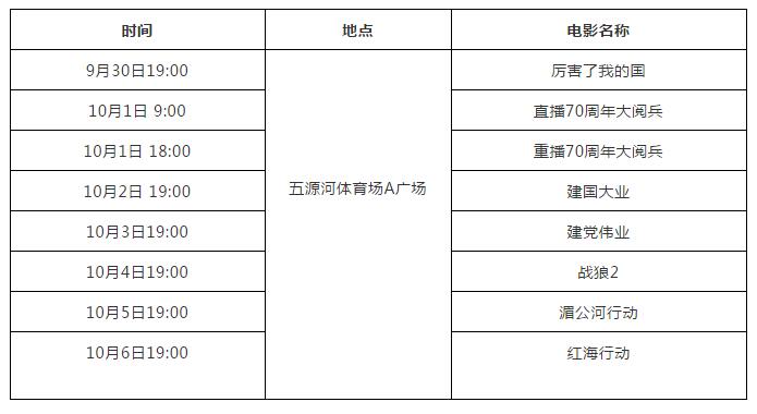 五源河体育场电影放映排期表