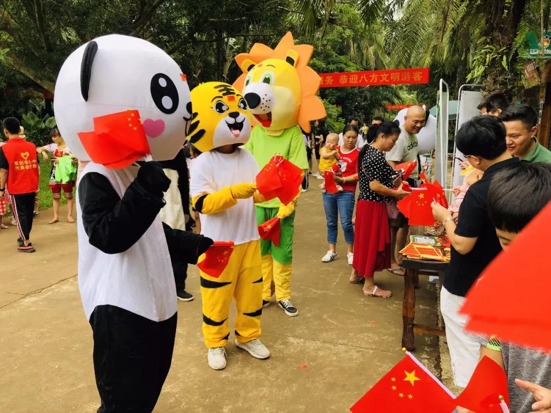 10月1日-7日活动期间,访园游客朋友们关注海南热带野生动植物园微信公众号或抖音或微博即可在现场领取小国旗、国旗贴任意一件礼物。