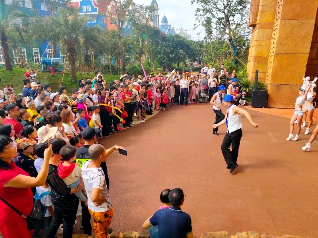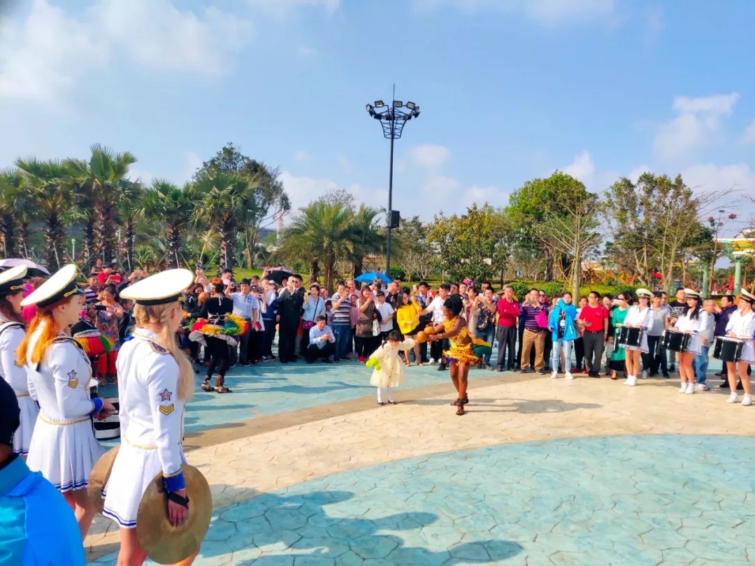 火山民俗乐,欢喜幸福游,2019年海口火山口地质公园春节游园同样气氛热烈。当天,园区内外洋溢着喜庆氛围,乡村大舞台、环廊广场、五环广场等主要场所,黎族歌舞、儋州调声、竹竿舞、树叶吹奏、琼剧、火山八音、魔术等春节民俗歌舞盛宴,精彩的民俗表演轮番演出,令人眼花缭乱、目不暇接。
