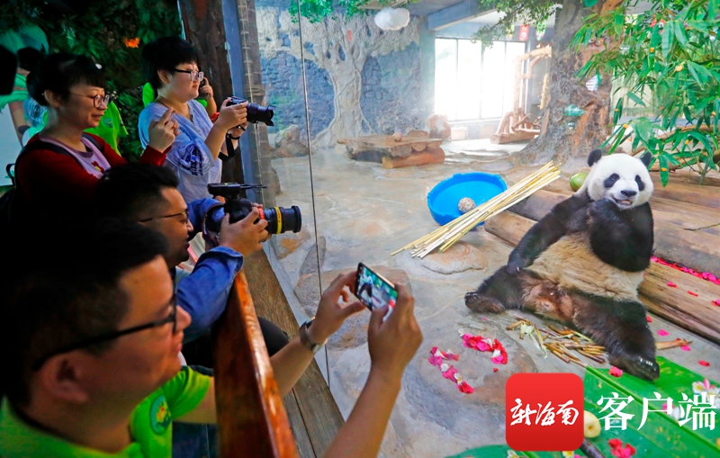 欢乐节观摩采访团一起走进海南野生动植物园打卡“熊猫兄弟”。记者 汪承贤 摄