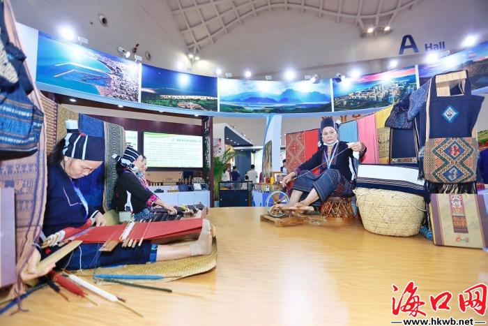 海南休博会现场织锦展示。邵阳 摄
