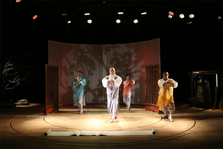 这是一个由中国古老传说改编的故事。《三个和尚》是中国儿艺“2014中华优秀传统文化年”系列儿童剧中的又一力作,是中华优秀传统故事与当代审美的完美结合。在故事创作方面,加入“老和尚”这一角色,丰富人物关系并加深人物间情感。在舞台呈现方面,主要以演员肢体语言作为叙事方式,将现代舞和戏曲风格相结合,同时注入武术元素搭配炫目的多媒体舞台效果。让孩子们更懂得团结、互助和“人心齐,泰山移”的道理。
