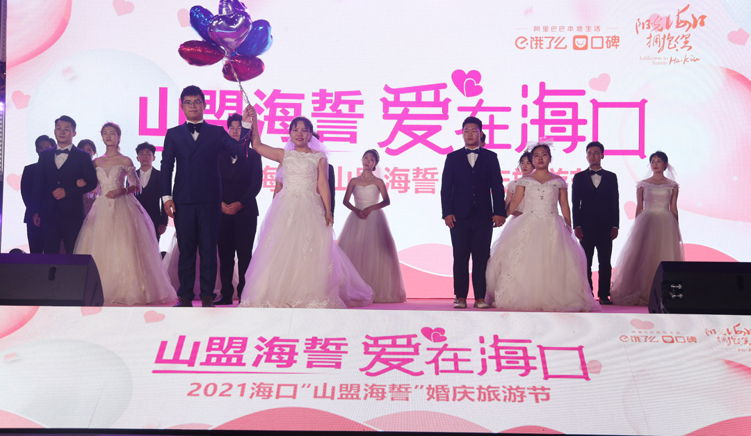 据海口市旅游和文化广电体育局相关工作人员介绍,近年来,海口挖掘热带滨海浪漫文化传统,以“山盟海誓 爱在海口”婚庆旅游节打造海口婚庆旅游基地,推动婚庆旅拍、婚庆策划、蜜月旅游、饰品手拌礼等婚庆旅游服务业规模发展的同时,既提升了海口作为婚庆旅游目的地的吸引力,又抓住智慧技术风口继续联合大型流量平台和品牌商家共同为海口赋能、引流,推进多维度、立体化富有海口特色的旅文IP的新形象打造。