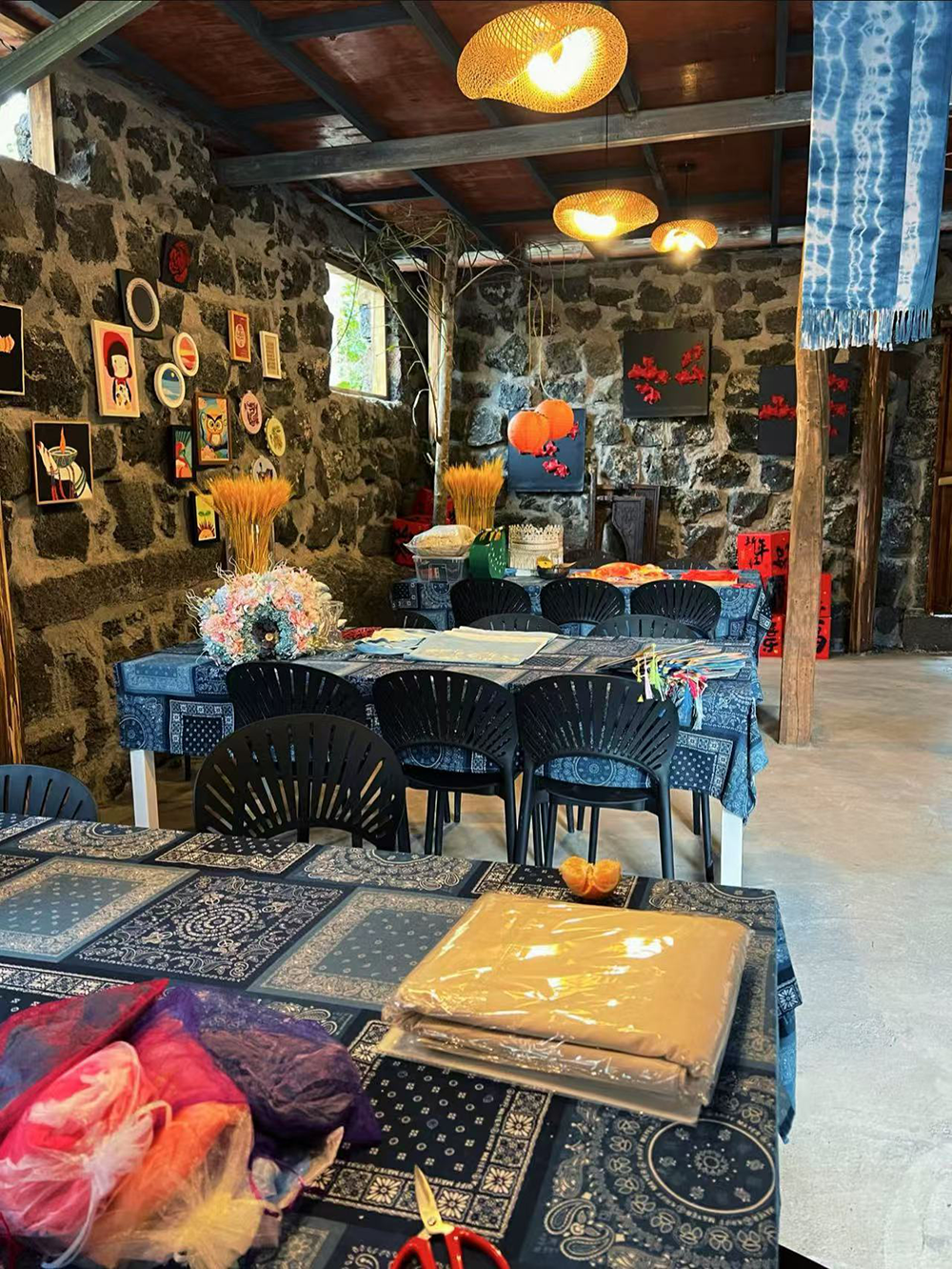 在火山岩垒砌的古巷深处,春风十里非遗小院中非遗扎染的靛蓝浸染着百年石墙,咖啡香气与活字印刷的墨香氤氲交织。小院计划引入上百种非遗技艺,打造首个火山主题非遗综合体。游客可在古韵流转的环境中体验疗愈课程,亦可亲手尝试扎染、蜡染、活字印刷等非遗手工技艺。三卿古村落承载着厚重的火山文化历史,是非遗项目绝佳的展示舞台。