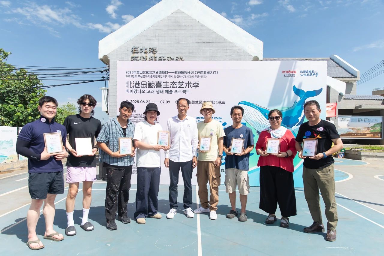 最后,北港村委还为韩国艺术家颁发了“北港岛荣誉村民”证书,从此,几位韩国艺术家们不再是远方的来客,而是北港岛的亲人。