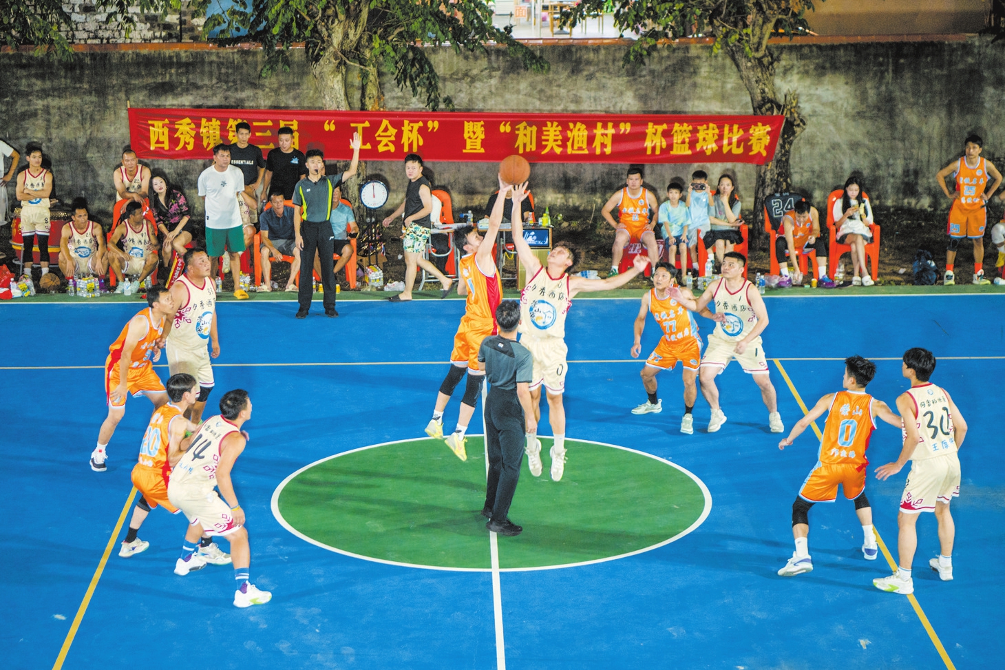 9月14日晚,荣山寮村灯火通明,西秀镇第三届“工会杯”暨“和美渔村”杯篮球赛激战正酣。球场上,队员们攻防转换迅速、比分紧咬不放,每一次进球都引来阵阵喝彩;看台边,观众呐喊助威,现场气氛热烈高涨。