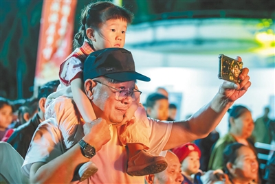 2月7日,游客观看琼海“村晚”。蒙钟德 摄