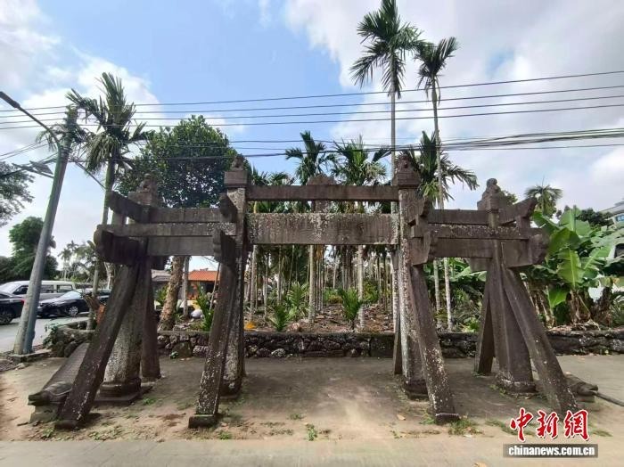 湧潭自然村中的贞寿坊,是古代琼州府四座贞寿牌坊之一。 中新网记者 张茜翼 摄