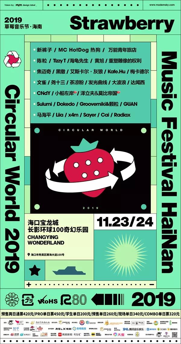 2019海南草莓音乐节将于11月23日至24日在长影环球100奇幻乐园&海口宝龙城举办,新裤子乐队、陈粒、MC Hotdog热狗等重量级嘉宾将倾情加盟!本次海南草莓音乐节将在舞台上全面升级,分别设置为草莓舞台、爱舞台、电子舞台、新血计划·嗨岛舞台四大舞台,并极大地丰富了草莓场景周边活动,如草莓MeMe广场、草莓青年文化市集、装置艺术及草莓餐饮等周边活动。