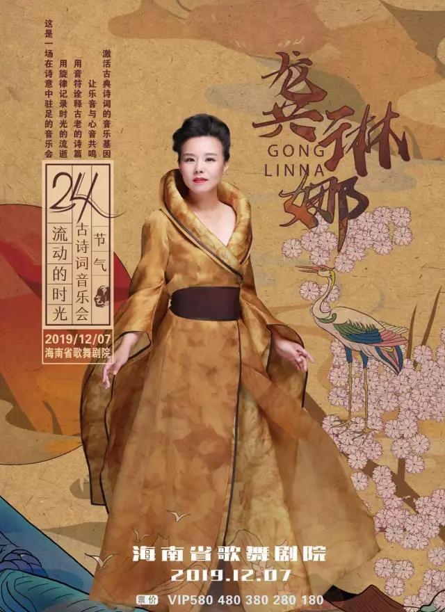"流动的时光"龚琳娜二十四节气古诗词音乐会将于12月7日在海南省歌舞剧院精彩呈现。此次音乐会,龚琳娜和龚锣新艺术乐团将在舞台上呈现13首节气诗词音乐作品,以春、夏、秋、冬作为四个音乐篇章。古诗词音乐在舞台上的呈现将极具人文特质,中国传统文化思想和音乐的艺术形式,巧妙的与舞台美术结合表现,将会另现场观众耳目一新。