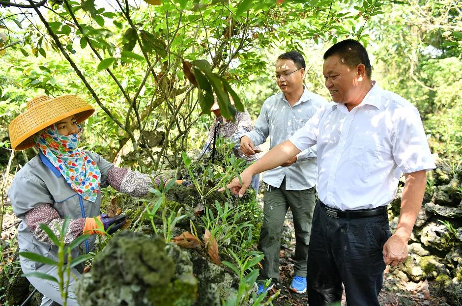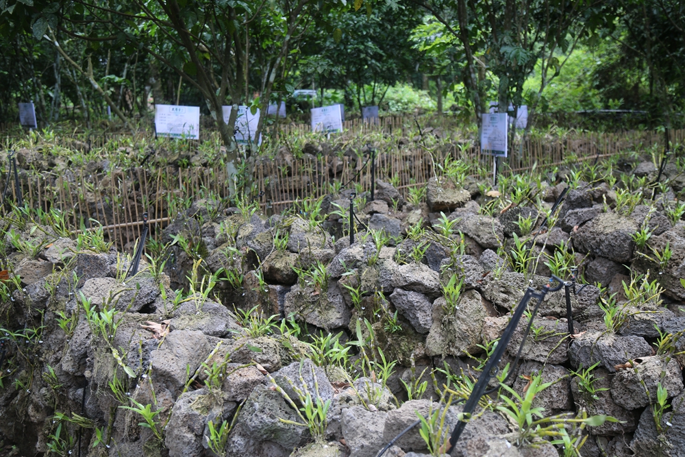 园区采用“龙头企业+合作社+农户”模式,海口施茶石斛(技术员教农民工种植技术)