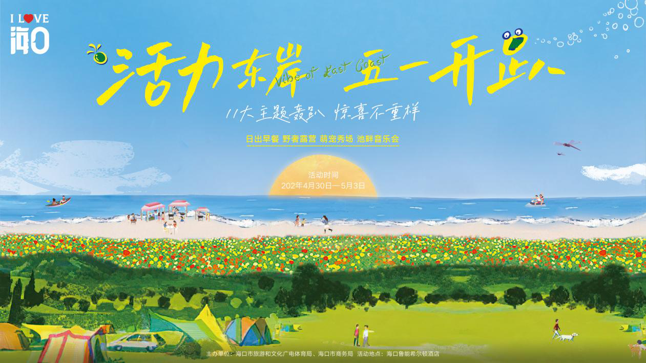 从4月30日至5月3日,由海口市打造的“I❤HK,51去海口”系列主题活动将快乐启航。作为本次系列活动的重要版块之一,“活力东岸·五一开趴”主题活动将聚焦海口东海岸片区,创新地将海口特色旅游体验融入本地生活方式,在海口鲁能希尔顿酒店举办野奢露营、萌宠秀场、池畔音乐会等11项主题派对系列活动,带领市民游客感受海口潮玩精彩!