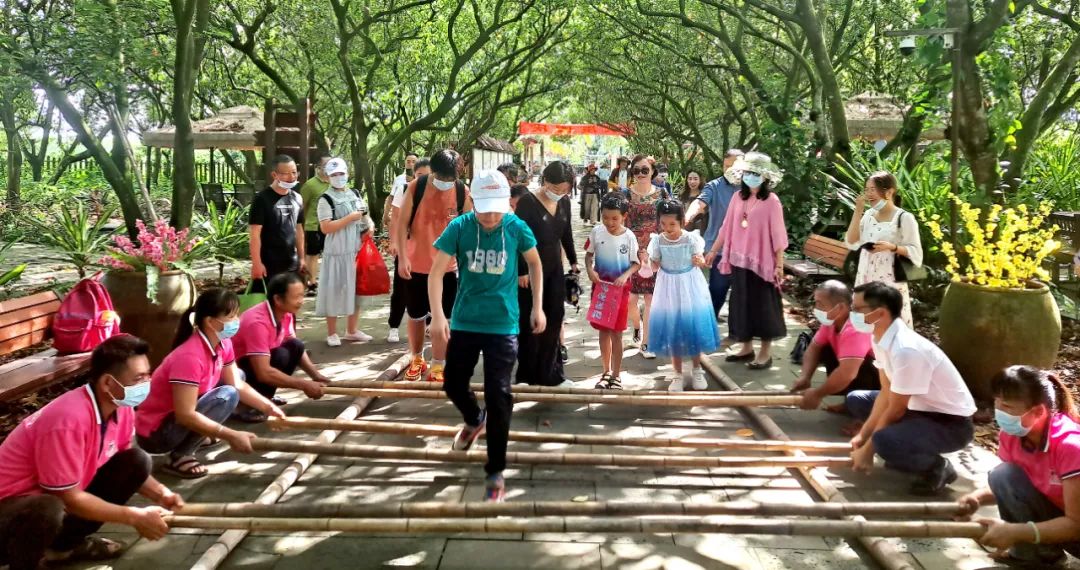 特色竹竿舞迎宾给刚走进园区的游客带来特别的出游感受。郁郁葱葱的橄榄林里,漫步、打卡拍照;在橄榄树下,市民游客尽情享受大自然的新鲜空气。徒步“龙栖谷”,火山断裂层形成的峡谷,体验琼北火山雨林峡谷,火山岩溪流,是整个园区最具生态、神秘及风水绝佳之亮点。