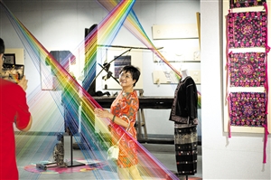10月3日上午,在898艺术村,市民游客在参观黎锦苗绣非遗展。 本报记者 陈长宇 摄